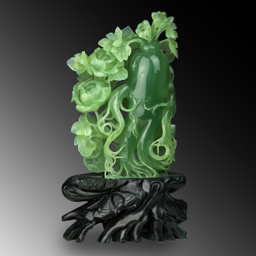 此款由天然優質岫玉精心巧雕而成,以浮雕、立雕、鏤雕等多種工藝雕琢人參、牡丹、錢幣,線條明快,柔美流暢,簡約精美,令人賞心悅目。牡丹寓意富貴,前途光明,與象征財富的錢幣、諧音“人生”的人參構成人生富貴的美好寓意。擺放一款在室內,情趣高雅,時尚不凡!