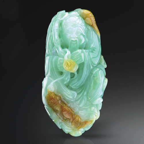 細糯綠底,翡色鮮亮,漁翁豐收喜悅之情惟妙惟肖。