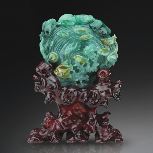 綠色充滿生機,俏色雕琢精巧,栩栩如生,極具動感。